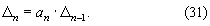 и так далее. Общий определитель Δn может быть разложен по последнему столбцу и составит:
