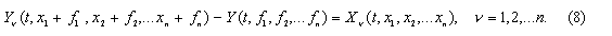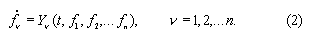 Частному решению fν(t) одного из системы уравнений (1) соответствует движение системы, которое назовем невозмущенным движением в противоположность другому движению, которое обозначим как возмущенное движение yν(t) . Очевидно, что fν(t) должно удовлетворять следующей системе уравнений: