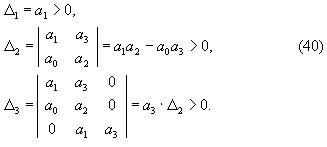 Для которой на основании критерия Гурвица можно записать следующие условия устойчивости: