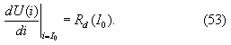 Разложим функцию U(i) в ряд в точке I0 по степеням малых возмущений ξ и ограничимся величинами первого порядка малости, пренебрегая всеми членами более высоких порядков малости: Обозначим величину дифференциального сопротивления нелинейного сопротивления Rd в точке i=I0: