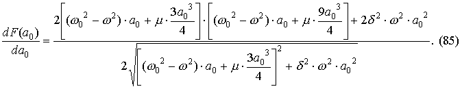 Используя обозначение (55) окончательно получаем: Последнее выражение представляет собой известный критерий Кауфмана для устойчивой рабочей точки электрической дуги. Устойчивость решений уравнения Дуффинга.Запишем уравнение движения неконсервативного нелинейного осциллятора, находящегося под гармоническим внешним воздействием, для случая среды с вязким трением (7.2), (11.1)1) Формулы с двойными номерами здесь – (7.2), (11.1) - и ниже – (7.5), (3.20), (9.5), (11.3), (11.5) – цитируются по книге [4].