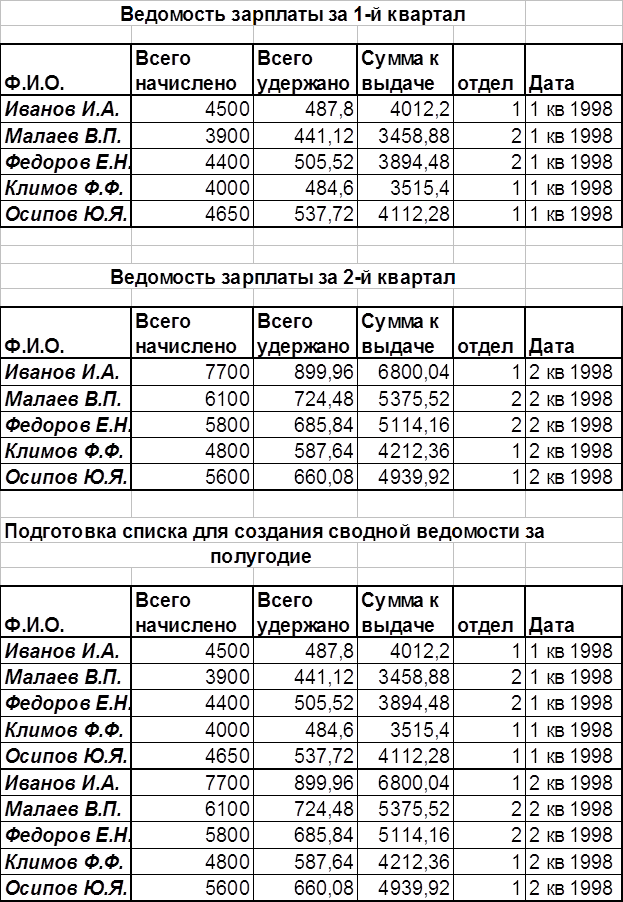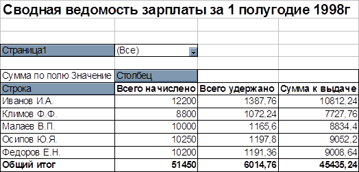 Сводная ведомость зарплаты за полугодие