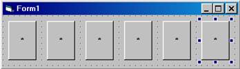 skolko = 1 End Sub Private Sub Label1_Click(Index As Integer) If Fix(skolko * Rnd) + 1 = Index Then ' если "угадали" - одна убирается Label1(skolko).Visible = False skolko = skolko - 1 Else ' если не "угадали - выставляется ещё одна" skolko = skolko + 1 If skolko <> 10 Then Label1(skolko).Visible = True End If Select Case skolko ' проверка на выигрыш и проигрыш Case 0 MsgBox "Вы выиграли!": End Case 10 MsgBox "Вы проиграли.": End End Select End Sub Завершим рассмотрение данного примера сравнением. Проект в первом случае имеет размер 2,46 Кб, в последнем - 8,57 Кб. Однако откомпилированные, исполняемые модули по размеру одинаковы ... Другой вопрос: а какова разница затраченного времени в обоих случаях, если второй писать "с нуля"? Ответ, понятно, субъективен и зависит во многом от того насколько хорошо вы знакомы со средой разработки, "видите" реализацию кода и насколько быстро набираете его. Пример последний или почему "индексированные элементы управления"? Чтобы понять, почему корректнее в некоторых случаях говорить "индексированные элементы управления c общим именем", а не "массив элементов управления" рассмотрим следующий небольшой пример. На форме брошены шесть кнопок, надписи которых заменены звёздочками: