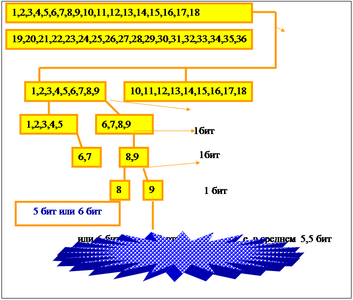 Применение искусственных языков или кодов: 1. Азбука Морзе. 2. Телеграфный код. 3. Жаргон (арго), воровской жаргон. Специальный или профессиональный жаргон ¾ естественный язык, образованный естественным путём и в отличии от искусственного языка сам изменяется или развивается. Любой язык, как естественный, так и искусственный состоит из множества элементов (алфавита) и множества правил составления из множества элементов осмысленных сообщений (синтаксис). Двоичная форма представления информации. Двоичная форма представления информации заключается в том, что она координируется двумя символами:0 и 1 т. е. да (1) и нет (0). Любую информацию можно представить как результат ответов на вопросы да или нет. В том случае если вариантов больше чем два их множество делят пополам, и ответ заключается в том, находятся в этой части правильный ответ. Такой способ называется дихотомия. Пример: я хочу определить в каком месяце у человека день рождения, задавая ему вопросы, на которые он будет давать ответы да или нет. Все месяца мы пронумеруем: