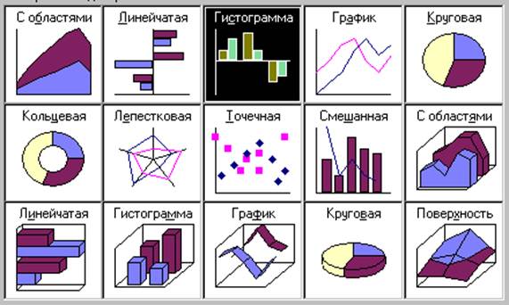 Рис. 22. Типы диаграмм 4.2.2. Построение диаграмм Для построения диаграммы выполните команду Вставка