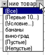 Рис. 29. Окно сортировки Два дополнительных раздела Затем и В последнюю очередь, по позволяют определить порядок вторичной сортировки для записей, в которых имеются совпадающие значения. Переключатель Идентифицировать поля по указывает, имеется ли в сортируемом списке строка заголовков, которую нужно исключить из сортировки. При наличии в списке меток столбцов выберите переключатель Подписям, в противном случае — Обозначениям столбцов листа. Окно диалога содержит кнопку Параметры, в результате нажатия которой открывается окно диалога “Параметры сортировки”. С помощью этого окна вы можете: · Определить пользовательский порядок сортировки для столбца, указанного в раскрывающемся списке Сортировать по · Сделать сортировку чувствительной к использованию прописных и строчных букв · Изменить направление сортировки (вместо сортировки сверху вниз установить сортировку слева направо) 5.5. Фильтрация данных в спискеФильтрация списка позволяет находить и отбирать для обработки часть записей в списке, таблице, базе данных. В отфильтрованном списке выводятся на экран только те строки, которые содержат определенное значение или отвечают определенным критериям. При этом остальные строки оказываются скрытыми. В Excel для фильтрации данных используются команды