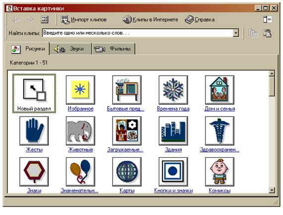 3. Выделить рисунок, который необходимо вставить, и нажать кнопку Вставка или просто щелкнуть левой кнопкой мыши по понравившемуся рисунку. |