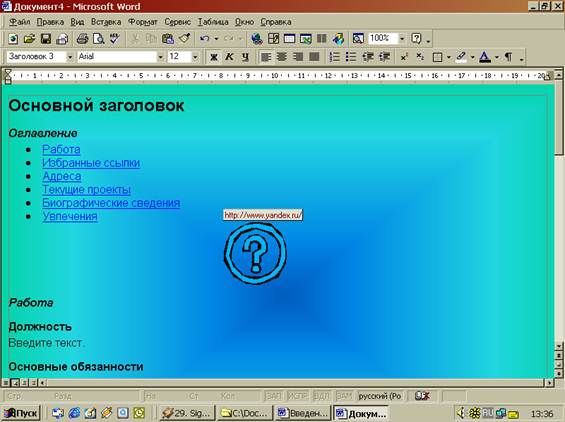 Реферат: Использование гиперссылок при создании Веб-страницыРеферат: Использование гиперссылок при создании Веб-страницыСодержание: