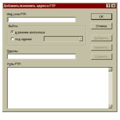 1. Щелкнуть по выделенному элементу. Появится диалоговое окно Добавить/изменить адреса FTP.