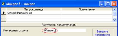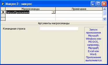 Рис 22. Создание макрокоманды “ЗапускПриложения” · В качестве значения аргумента Командная строка введите имя запускаемой программы, например WinWord.