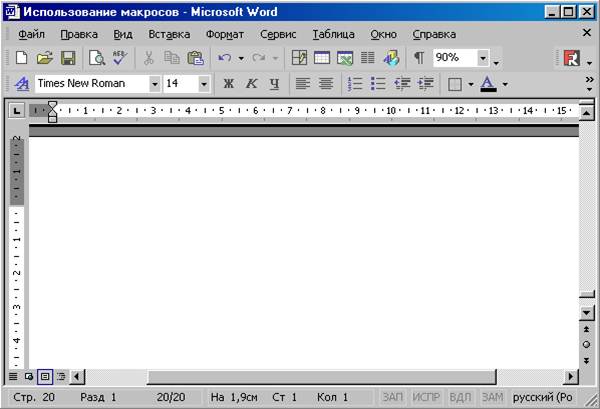 Рис 10. Пустая панель инструментов · Перетащите с помощью мыши нужный макрос на эту панель. На панели появляется кнопка с уже знакомым значком макроса.