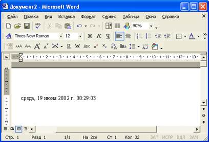 Рис 27. Ввод даты и времени в текстовый редактор Word · Сохраните документ Word 2000 под именем Заметки в папке Мои документы, не указывая расширение doc, и закройте окно Word 2000. · Маркируйте макрос Заметки в окне базы данных и активизируйте режим конструктора.
