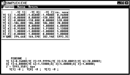 Z5 = 5991,0396, следовательно Z5 < Z4, значит в вершине 4 мы получили решение задачи ЦЛП.