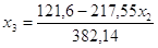 32,78x2 + 32,648x3 – 35,88x1 – 32,89x2