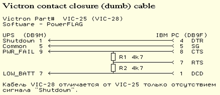3.11 Invertomatic-Victron (IMV) 3.11.1 Victron UPS "intelligent" (serial communication) cable Victron Part# VIC-23/2 , Software - PowerFLAG