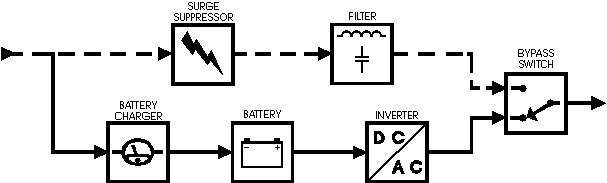 charger'ом. Bypass switch обеспечивает подачу напpяжения сети напpямую с входа