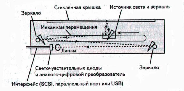 Перфокарта (перфорационная карта), носитель информации в виде прямоугольной карточки, обычно из тонкого эластичного картона (реже из пластмассы), на которую информация записывается пробивкой отверстий (перфораций). Одно из первых применений — машина Жаккарда (1800); перфоленты широко использовались в телеграфных аппаратах (1-я пол. 20 в.) и ЭВМ (50-60-е гг. 20 в.). Так например на одном из первых программно-управляемых компьютеров, созданном в 1943 г. под руководством американца Говарда Айкена, Mark-1 - программа обработки данных вводилась с перфоленты. Сканер. Сканеры предназначены для ввода графической информации. С помощью сканеров можно вводить и знаковую информацию. В этом случае исходный материал вводится в графическом виде, после чего обрабатывается специальными программными средствами. Сканирование документов – процесс создания электронного изображения бумажного документа, напоминает его фотографирование. Из всех компьютерных устройств, сканер – одно из самых старых по времени из изобретений. Системы для сканирования изображения являются неотъемлемой частью таких устройств, как фототелеграф, телефакс, телекамера и существуют уже более ста лет. В 1855 году итальянский физик Казелли создал прибор для передачи изображений, названный "пантелеграфом". В этом приборе игла сканировала изображение, нарисованное токопроводящими чернилами. С изобретением фотоэлемента был создан фототелеграф, в котором тонкий луч света перемещался по поверхности закрепленной на барабане фотографии. Свет, отражаясь от поверхности изображения, попадает на катод фотоэлемента, вызывая ток эмиссии, пропорциональный отражательной способности. В начале века немецким физиком Корном был создан фототелеграф, который ничем принципиально не отличается от современных барабанных сканеров. В нем происходит механическое сканирование изображения по двум координатам и освещается каждая точка в отдельности. Проходящий через нее свет воспринимается одним селеновым фотоприемником - следовательно, отсутствует погрешность, связанная с неидентичностью чувствительных элементов. Это самый старый и на сегодняшний день самый качественный, но и самый дорогой способ. Он не имеет принципиальных ограничений на число точек, из которых будет составлено изображение. Развитие полупроводниковых технологий позволило объединить несколько фотоприемников в одну линейку и обойтись перемещением только по одной координате. Это привело к рождению планшетных, рулонных, проекционных и ручных сканеров. Их оптическая схема абсолютно одинакова и может быть представлена в виде объектива, фокусирующего строку изображения на линейку фотоприемников. Различие заключается в способе перемещения фотографии, линейки фотоприемников и объектива. Обычно объектив и линейка фотоэлементов жестко связаны и перемещаются относительно фотографии. Разрешение подобных устройств обусловлено числом чувствительных элементов в линейке, и если ширина фотографии меньше рабочей поверхности сканера, то используется только часть фотоэлементов. В некоторых проекционных сканерах и студийных цифровых фотоаппаратах происходит перемещение линейки фотоприемников относительно изображения, сформированного неподвижным объективом. Проекционные сканеры позволяют сфокусировать объект на всю ширину ли