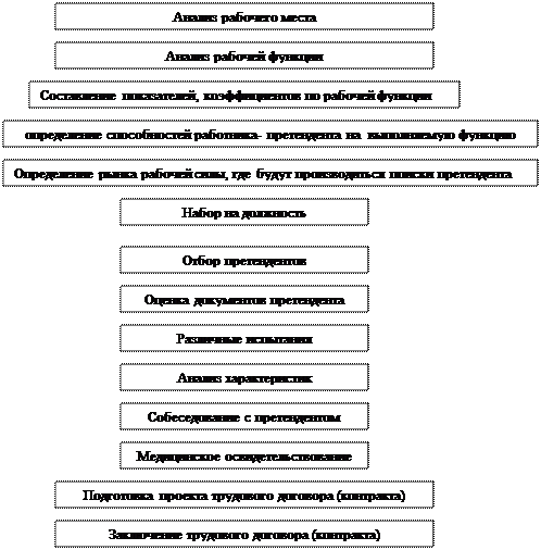 Отбор кадров осуществляется из наиболее подходящих кандидатур резерва, созданного в ходе набора. При отборе кандидатов важно определить цели отбора, профессиональные и личные качества кандидатов, методы отбора.