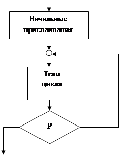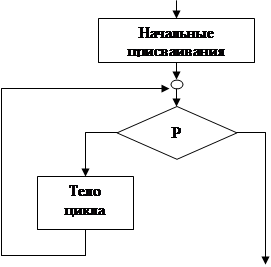 (рис.) тело цикла исполняется, пока – условие истинно. Условие Р в этой