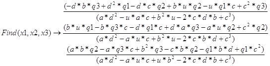 b*x1 + c*x2 = q2 -solve-tmp Find(x1, x2) · Определение корней системы третьего порядка. Given