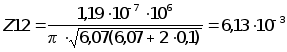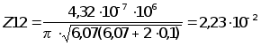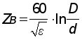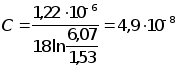где D=6,07 мм - внутренний диаметр внешнего проводника малогабаритной КП; d=1,53 мм - диаметр внутреннего проводника. На частоте 0,1fт