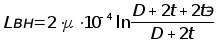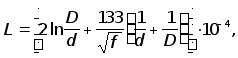 Индуктивность третьей цепи, составленной из внешних проводников рассматриваемых коаксиальных пар рассчитывается по формуле, в Гн/км