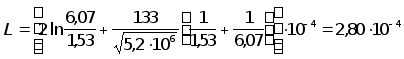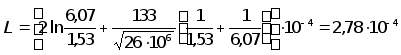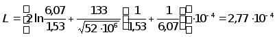 Коэффициент взаимной индукции m можно определить по формуле, в Гн/км