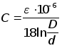 где e - эквивалентная относительная диэлектрическая проницаемость изоляции; d - диаметр внутреннего проводника, мм; D - внутренний диаметр внешнего проводника, мм. Значение D определяется из приведенного выше уравнения (6.1) при значении волнового сопротивления Zв=75 Ом по формуле:
