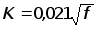 K - коэффициент вихревых токов, для меди, в 1/мм