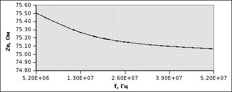 Рис. 7.6. Частотная зависимость волнового сопротивления Zв. Скорость распространения электромагнитной энергии по кабельным линиям с ростом частоты существенно возрастает. Скорость распространения электромагнитной энергии по линии при постоянном токе составляет примерно 10000 км/с, а при токах высоких частот имеет величину порядка 250000 км/с, приближаясь к скорости света.