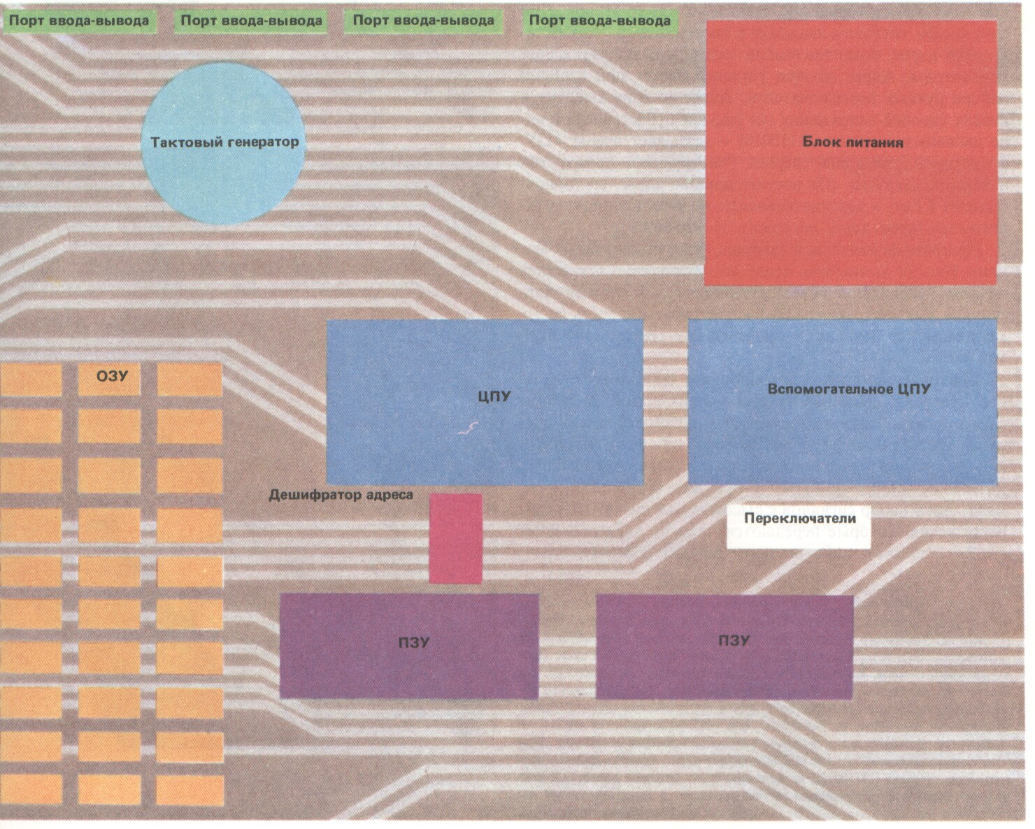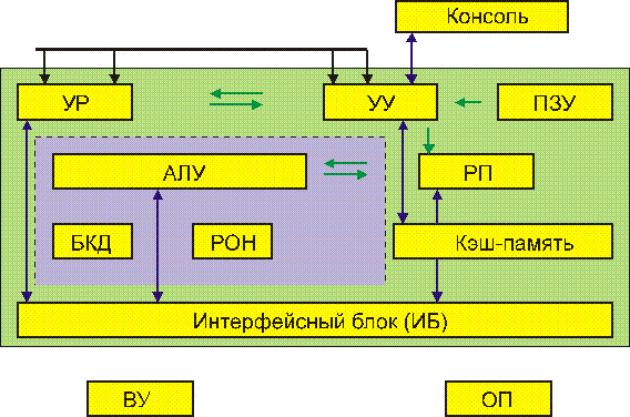 Кэш-память, внутренняя память ЭВМ. В настоящее время память этого типа широко используется в мини-, общего назначения и супер-ЭВМ, а также в более мощных ПК. Кэш-память выполняется на быстродействующих БИС и её быстродействие должно соответствовать скорости работы АЛУ и УУ. Кэш-память используется для ранения наиболее часто используемых программ и данных, осуществляя своего рода связующий буфер между быстрыми устройствами ЦП и более медленной ОП и позволяя получать существенный временной выигрыш. Оперативная память (ОП) служит для хранения информации (программы, данные, промежуточные и конечные результаты),непосредственно обеспечивающие текущий вычислительный процесс в АЛУ и УУ процессора. Информация в ОП сохраняется только при наличии питания (сеть, батарея); поэтому во избежание потери информации, используемые для наиболее важных работ ЭВМ различных классов обеспечиваются автономным блоком питания (UPS), который автоматически включается при отключении основного питания (переносные ПК). В процессе обработки информации осуществляется тесное взаимодействие ЦА и ОП под управлением первого: из ОП в ЦП поступают команды и операнды, над которыми производятся операции (определяемые их кодами в командах), а из ЦП в ОП записываются промежуточные и конечные результаты обработки. В настоящее время объём ОП колеблется в широком диапазоне, от 640Кбайт (для простых ПК), до нескольких гигабайт у супер-ЭВМ; время обращения к памяти менее 0,2мкс; в качестве элементной используется в основном полупроводниковая база (диапазоны значений времени доступа в наносекундах: СВОП-5-15, кэш-10-50, ПЗУ-30-200, ОП-50-150). Развитие элементной базы постоянно корректирует эти показатели в сторону уменьшения; при этом скорость уменьшения увеличивается. Рассмотрим структурную организацию ОП современных ЭВМ. Различают: адресную, ассоциативную и стэковую память. Адресная память – размещение и поиск информации в ней основаны на адресном принципе хранения слов; адресом слова является номер его ячейкп. При доступе к такого типа памяти команда должна указывать номер(адрес) ячейки ОП прямо или косвенно через адресные регистры (база, смещение) Ассоциативная память – обеспечивает поиск нужной информации по её содержанию; при этом поиск по ассоциативному признаку происходит параллельно во времени для всех ячеек ОП. Во многих случаях такой вид памяти позволяет существенно ускорить и упростить обработку иняормации, что достигается за счёт совмещения операции доступа с выполнение ряда логических операций. Стэковая память – также является безадресной и её можно представить в виде одномерного массива ячеек. В таком массиве соседние ячейки связаны друг вс другом последовательной передачей свлов: запись нового слова в ОП производится в её верхнюю яченйку с номером 0, при этом все ранее записанные слова (включая 0-ячейку) сдвигаются на ячпейку вниз, т.е. получают адреса на 1 больше прежних (до операции записи). Считывкание в такого типа памяти производится только из её 0-ячейки; при этом, если производится считывание с удалением слова, то все остальные слова сдвигаются вверх на одну ячейку. Стековая память реализует LIFO – принцип доступа: Last Input – First Output.