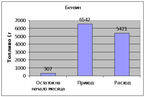 Затем подсчитала итог по остатку горючего на начало месяца.