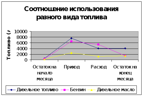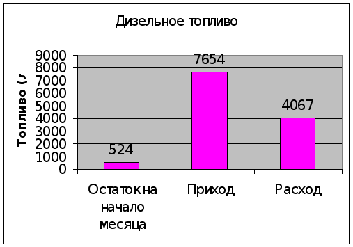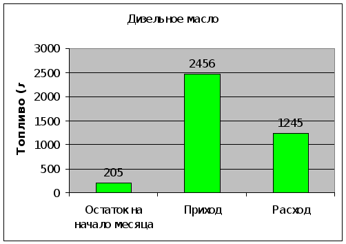 *Затем выделила первый столбик «остаток на начало месяца» (от дизельного топлива до дизельного масла).