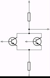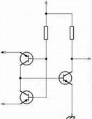 2. ТТЛ, или Т2Л —транзисторно-транзисторна логика. Реализована на биполярных транзисторах. Использовалась в интегральных схемах малой и средней степени интеграции. Обладает временем задержки сигнала в логическом элементе 10— нс, а потребляемая мощность на элемент —10 мВт. 3.