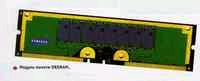 3.3.1. SDRAM. Рис. B.3.6. Модуль памяти SDRAM Аббревиатура SDRAM расшифровывается как Synchronic DRAM (динамическое ОЗУ с синхронным интерфейсом). Этим они отличаются от FPM и EDO DRAM, работающих по асинхронному интерфейсу. С асинхронным интерфейсом процессор должен ожидать, пока DRAM закончит выполнение своих внутренних операций. Они обычно занимают 60 нс. В DRAM с синхронным управлением происходит защелкивание информации от процессора под управлением системных часов. Триггеры запоминают адреса, сигналы управления и данных. Это позволяет процессору выполнять другие задачи. После определенного количества циклов данные становятся доступными, и процессор может их считывать. Таким образом, уменьшается время просто процессора во время регенерации памяти. Другое преимущество синхронного интерфейса —это то, что системные часы задают временные границы, необходимые DRAM. Это исключает необходимость наличия множества стробирующих импульсов, обязательных дл асинхронного интерфейса. Это, во-первых, уменьшает трафик по локальной шине (нет “лишних”сигналов), а во-вторых, позволяет упростить операции ввода-вывода (в операциях пересылки центральный процессор либо контроллер DMA уже не должен выделять полезную информацию среди служебных стробирующих импульсов и битов четности). В-третьих, все операции ввода/вывода на локальной шине стали управляться одними и теми же синхроимпульсами, что само по себе хорошо. Хотя SDRAM появилась уже давно, использование ее тормозилось высокой (на 33%) ценой по сравнению с EDO RAM. “Звездный час”SDRAM настал в 1997 году, после появления чипсета 440BX, работающего на частоте 100 МГц. Вследствие этого доля рынка SDRAM за год выросла в два раза (с 25% в 1997 году до 50% в 1998 году.) В настоящее время выпускаютс модули SDRAM, работающие на частотах 100 и 133 МГц. Также разработаны SDRAM на частоты 143 МГц и выше. 3.3.2. ESDRAM. Следующим оригинальным решением, увеличившим частоту работы SDRAM, явилось создание кэша SRAM на самом модуле динамического ОЗУ. Так появилась спецификация Enhanced SDRAM (ESDRAM). Это позволило поднять частоту работы модуля до 200 МГц. Назначение кэша на модуле точно такое же, что и кэш второго уровн процессора —хранение наиболее часто используемых данных.