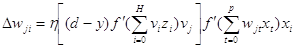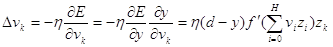 Коррекция весов между входным и скрытым слоями производится по формуле: