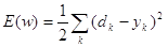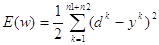 k — номер обучающей пары в обучающей выборке, k=1,2,…,n1+n2 n1 - количество векторов первого класса; n2 - число векторов второго класса. В качестве функционала оптимизации будем использовать критерий минимума среднеквадратической функции ошибки: