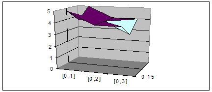 где Yi – выход i- го нейрона слоя Кохонена Sj – компонента целевого вектора (S={0,1} – взрыв, S={1,0}-землетрясение) Таким образом после предварительного обучения и формирования кластеров в слое Кохонена, на фазе вторичного обучения все нейроны каждого полученного кластера соединяются активными (единичными) синапсами со своим выходным нейроном, характеризующим данный кластер. Выход нейронов второго слоя определяется выражением: (11) где: Kj - размерность j-ого кластера, т.е. количество нейронов слоя Кохонена соединённых с нейроном j выходного слоя отличными от нуля коэффициентами. R - пороговое значение (0 < R < 1). Пороговое значение R можно выбрать таким образом, чтобы с одной стороны не были потеряны значения активированных кластеров, а с другой стороны - отсекался "шум не активизированных кластеров". В результате на каждом