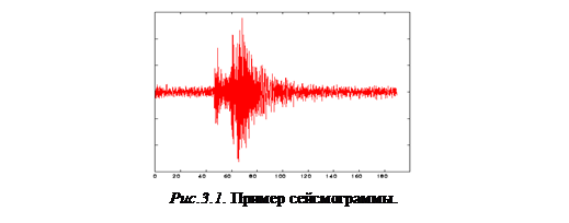 Для решения этой задачи в настоящее время применяются различные аналитические методы из теории статистического анализа, позволяющие с высокой вероятностью правильно классифицировать данные. Как правило, для конкретного региона существует своя база данных записанных событий. Она включает в себя пример сейсмограмм характеризующих как землетрясения, так и взрывы произошедшие в этом регионе с момента начала наблюдения. Все существующие методы идентификации используют эту базу данных в качестве обучающего множества, тем самым, улавливая тонкие различия характерные для данного региона, методы, настраивают определенным образом свои параметры и в итоге учатся классифицировать все обучающее множество на принадлежность к одному из двух классов. Один из наиболее точных методов основан на выделении дискриминантных признаков из сейсмограмм и последующей классификации векторов признаков с помощью статистических решающих правил. Размерность таких векторов соответствует количеству признаков, используемых для идентификации и, как правило, не превышает нескольких десятков. Математическая постановка в этом случае формулируется как задача разделения по обучающей выборке двух классов и ставится так: имеется два набора векторов (каждый вектор размерности N): X1,…,Xp1 и Y1,…Yp2. Заранее известно, что Xi (i=1,…,p1) относится к первому классу, а Yj (j=1,…,p2) - ко второму. Требуется построить решающее правило, т.е. определить такую функцию f, что при f(x) > 0 вектор x относился бы к первому классу, а при f(x) < 0 - ко второму, где xÍ{X1,…, Xp1, Y1,…, Yp2}. 3. Статистическая методика решения задачи классификации. В данном разделе рассматривается методика определения типов сейсмических событий, основанная на выделении дискриминантных признаков из сейсмограмм и последующей классификации векторов признаков с помощью статистических решающих правил.[8] 3.1 Выделение информационных признаков из сейсмограмм. Исходные данные представлены в виде сейсмограмм (рис. 3.1) – это временное отображение колебаний земной поверхности.