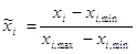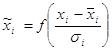 (предобработанных) данных: Общий принцип предобработки данных для обучения, таким образом состоит в максимизации энтропии входов и выходов. 5.2 Нормировка данных. Как входами, так и выходами могут быть совершенно разнородные величины. Очевидно, что результаты нейросетевого моделирования не должны зависеть от единиц измерения этих величин. А именно, чтобы сеть трактовала их значения единообразно, все входные и выходные величин должны быть приведены к единому масштабу. Кроме того, для повышения скорости и качества обучения полезно провести дополнительную предобработку, выравнивающую распределения значений еще до этапа обучения. Индивидуальная нормировка данных. Приведение к единому масштабу обеспечивается нормировкой каждой переменной на диапазон разброса ее значений. В простейшем варианте это – линейное преобразование: