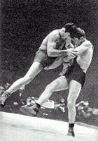 Неуравновешенные композиции. Весь анализ иллюстративного материала показывает, что равновесие, устойчивость изображения достигаются соответствующим расположением в кадре всех его смысловых и изобразительных элементов и что существует великое разнообразие композиционных форм. Всякий раз форма снимка берет начало от его содержания. Получив представление об общих законах построения кадра, фотограф начнет поиск нового материала и новых решений, не повторяя уже изученного и найденного, но лишь опираясь на знание законов и пользуясь приемами изобразительного решения темы как средством выражения замыслов. Рассмотренные примеры и большое количество фоторабот показывают, что в фотографии очень распространены уравновешенные композиции. Однако существуют и иные, как бы обратные решения проблемы, то есть такие композиции, где равновесие сознательно нарушается в целях достижения определенного художественного эффекта. Такой эффект всегда обусловлен содержанием картины, и фотограф прибегает к нему потому, что сюжет получает особую выразительность именно при этом изобразительном решении кадра Примером снимка, в котором нарушены классические принципы равновесия, может служить фото 53 (Е. Шматриков "Борцы"). Фигуры спортсменов расположены в правой части кадра и сюда же направлено движение. Вертикальная ось основной группы, таким образом, резко смещается от центра вправо, равновесие композиции нарушается, она теряет свою устойчивость. Но это, конечно, не случайность, а сознательно примененный автором композиционный прием. Фотограф знает, что равновесие сообщает рисунку устойчивость. Следовательно, потеря равновесия, выход из устойчивого положения содержат в себе элемент динамизма. Значит, неуравновешенная композиция должна помочь передаче движения и сделать снимок более динамичным. Так оно и есть: потеря композиционного равновесия на фото 53 усиливает эффект внутрикадрового движения. Эффект подчеркивается также уклоном линии горизонта.