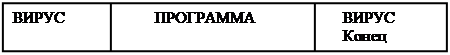 Восстанавливается первоначальный вид программы После восстановления вирус запускает программу Рис.2 Дальнейшая работа вируса отличается только тем, что часть вируса, восстанавливающая первоначальный вид программы, переносит к адресу 100h все тело программы, а не только вытесненную часть. Схема работы вируса, заражающего файл таким образом, приведена на рис. 4.