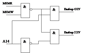 3) дешифрация с помощью комбинаторной логики. В этом случае для формирования сигналов выборки кристалла используется логические элементы: