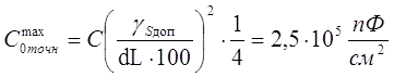 3.Определим минимально возможную толщину слоя диэлектрика. dmin=2,1×10-5 см 4.Исходя из полученного значения толщины расчитаем удельную емкость конденсатора. С0пр=0,0885×e/d C0пр=4.636×104 пФ/см2