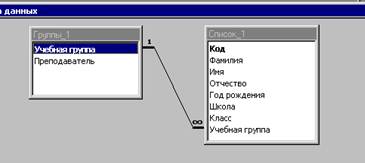 Щелкнем по кнопке Создать. Появится связь «один-ко-многим». Схема данных представлена на рисунке 5. Рисунок 5 · закрыть схему данных, ответив утвердительно на вопрос о сохранении схемы данных. Задание 4. Заполнение таблицы Группы значениями. Порядок работы: · Открыть таблицу Группы в режиме таблицы. · Заполнить ее записями из таблицы 2. Таблица № 2.
