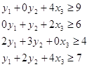 Прямые ограничения: Оптимальная производственная программа заключается в выпуске 95 ед. первой продукции, 210 ед. второй продукции, 0 ед. третьей продукции и 0 ед. четвертой продукции. Третий и четвертый вид продукции выпускать не выгодно, т.к. затраты превышают цену. 2. Сформулировать двойственную задачу и найти ее оптимальный план. Пусть Целевая функция: Функциональные ограничения: