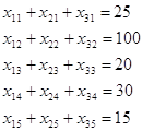 т.о. условие баланса выполнятся – транспортная задача закрытая. Функциональные ограничения по поставщикам: