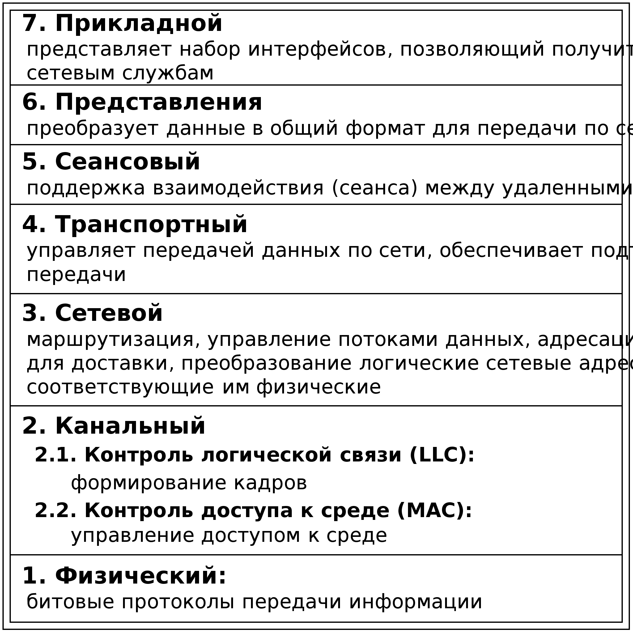 На рис. 2.4 приведено краткое описание функций всех уровней.