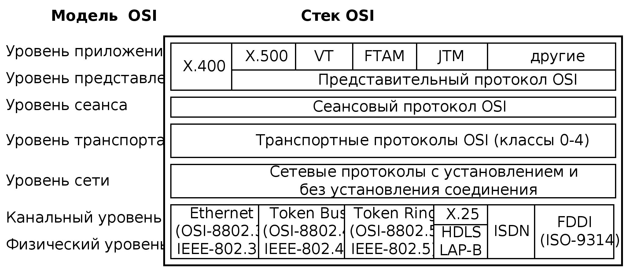 Тема 3.Стек OSIСледует различать стек протоколов OSI и модель OSI рис.3.1. Стек OSI – это набор вполне конкретных спецификаций протоколов, образующих согласованный стек протоколов. Этот стек протоколов поддерживает правительство США в своей программе GOSIP. Стек OSI в отличие от других стандартных стеков полностью соответствует модели взаимодействия OSI и включает спецификации для всех семи уровней модели взаимодействия открытых систем