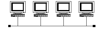 Рис. 4.14 Типы топологий Общая шинаОбщая шина это тип сетевой топологии, в которой рабочие станции расположены вдоль одного участка кабеля, называемого сегментом.